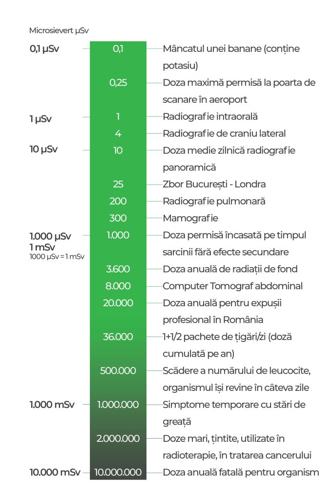 Radiațiile fac parte din viața noastră de zi cu zi, provenind din diverse surse naturale și artificiale. Înțelegerea acestor niveluri de radiație vă poate ajuta să luați decizii informate și să apreciați măsurile de siguranță pe care le implementăm în cadrul procedurilor radiologice.
