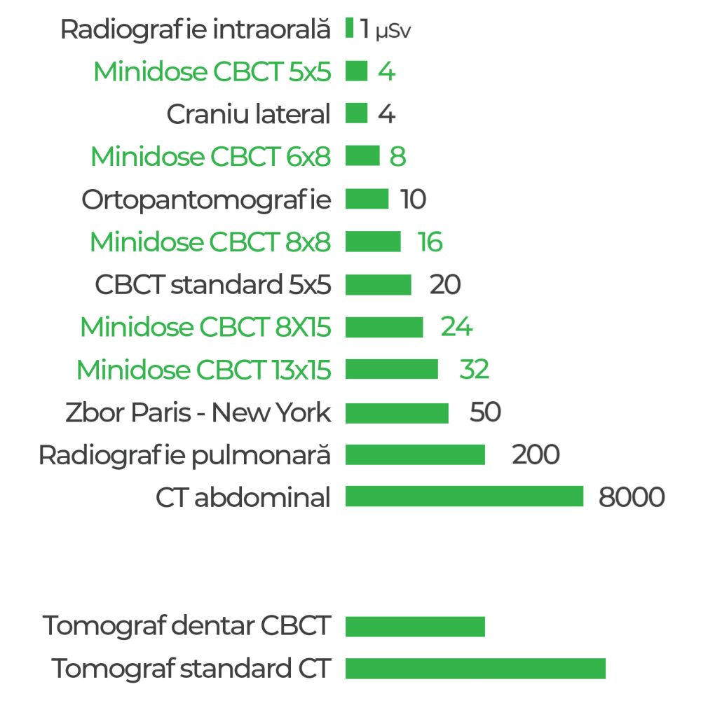 Datorită tehnologiei moderne, nivelul radiaţiilor necesare pentru obţinerea unei imagini radiologice foarte bune din punct de vedere calitativ, este redus la minim.